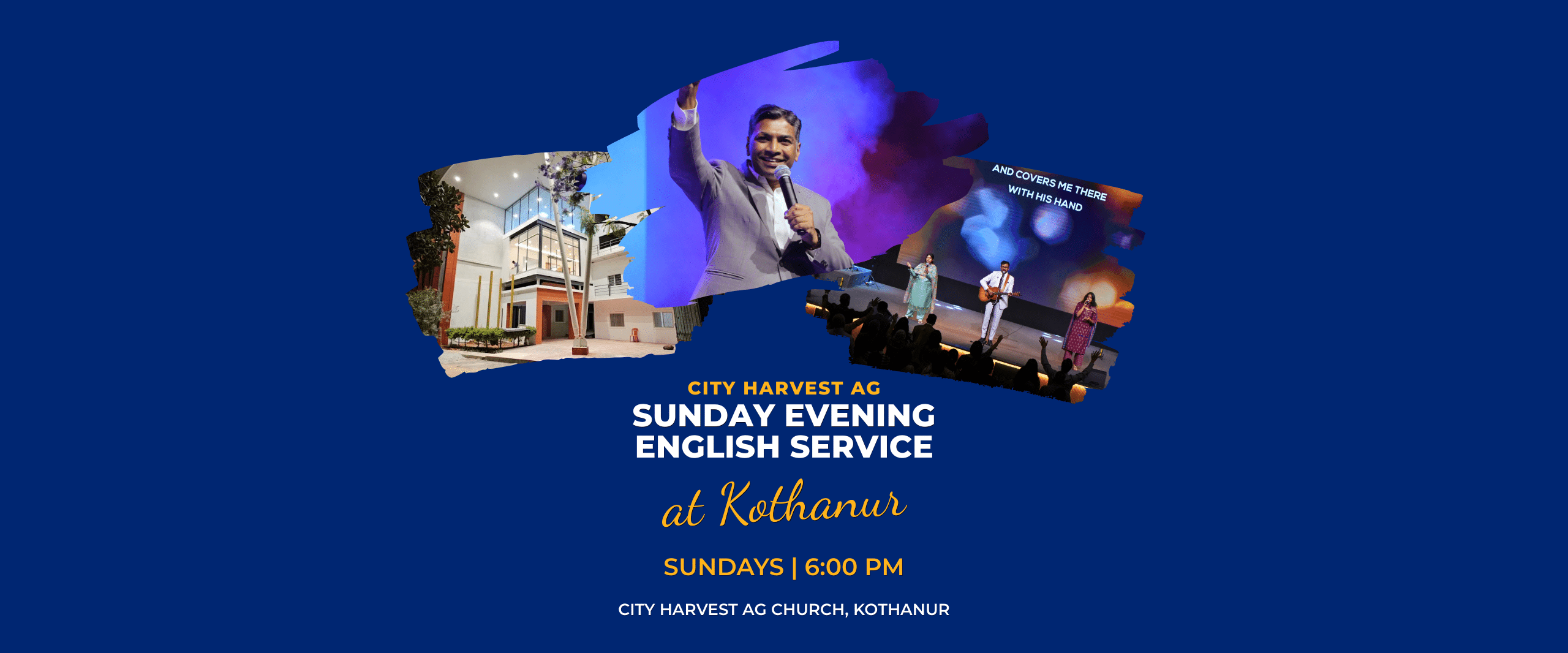 Join us for our evening service at City Harvest AG Church, Kothanur Campus on Sunday at 6PM for worship, life-giving teaching, and meaningful fellowship.